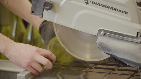 Our sister non-profit, Bottle Underground, collects bottles and jars from local businesses and community members. A portion of the glass is selected for Remark Glass then cleaned, cut, heat, and reshaped into a treasure for your home.