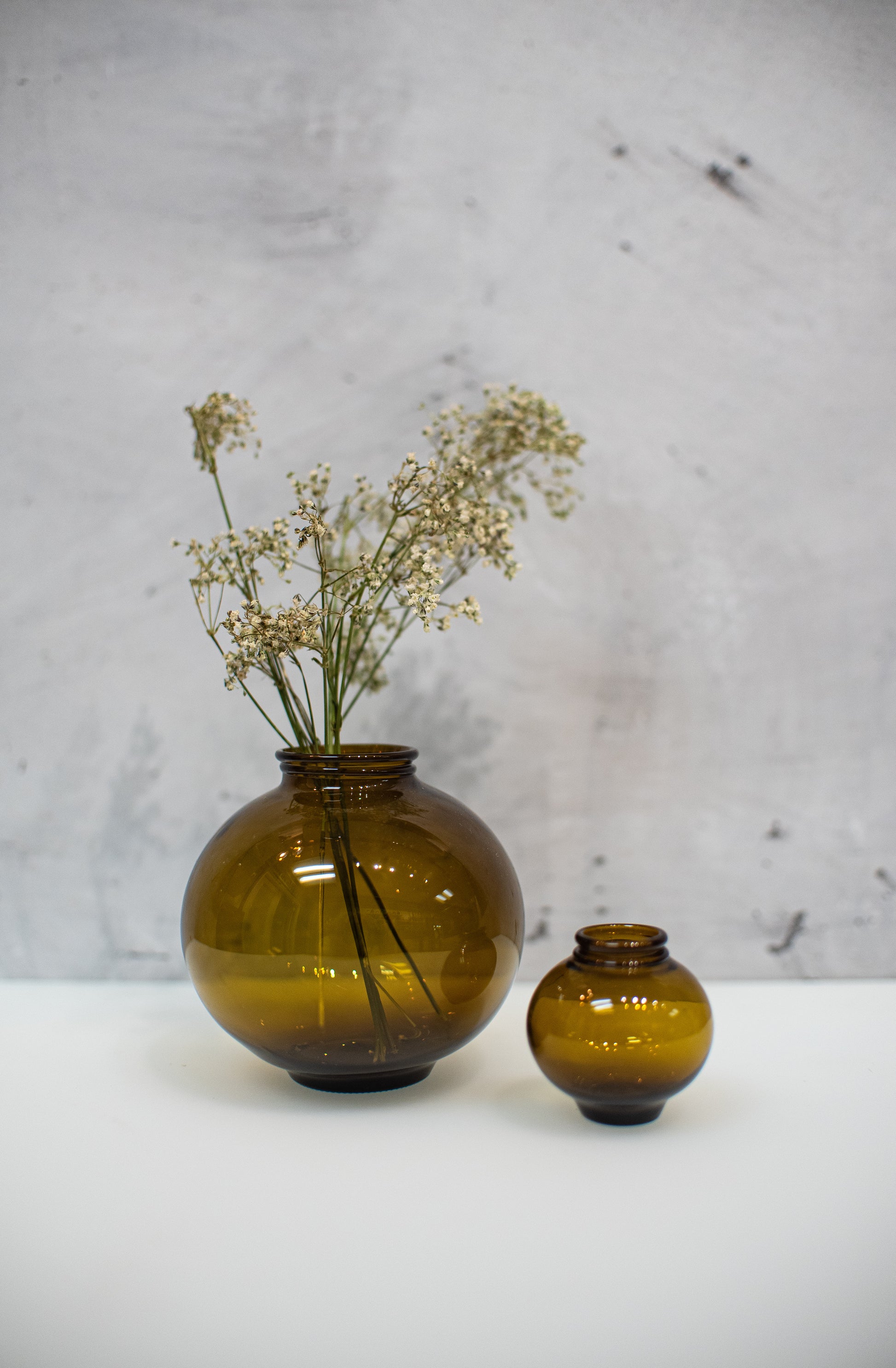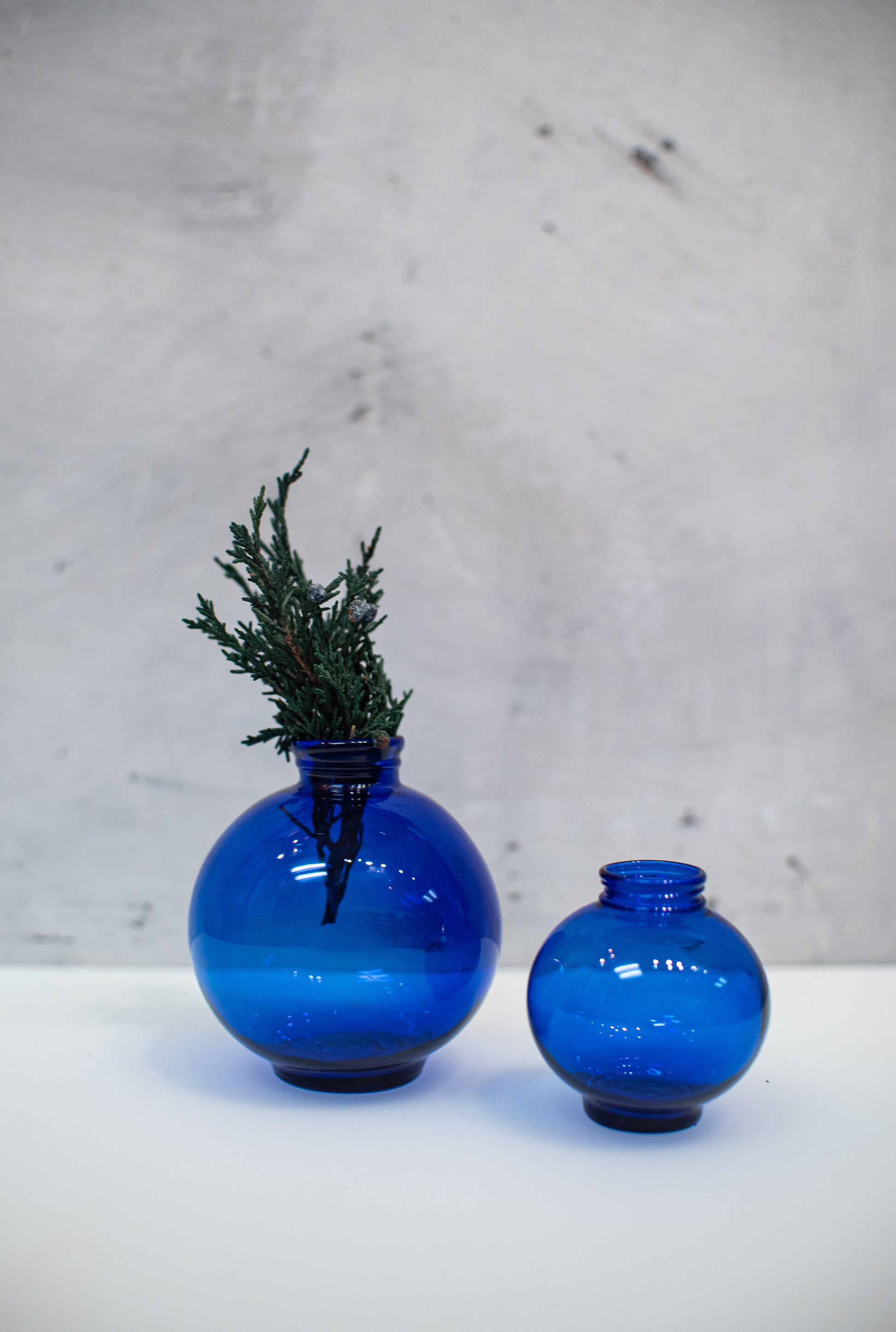Every vase is hand blown from small cosmetic and liquor bottles sourced by our nonprofit in Philadelphia, PA.