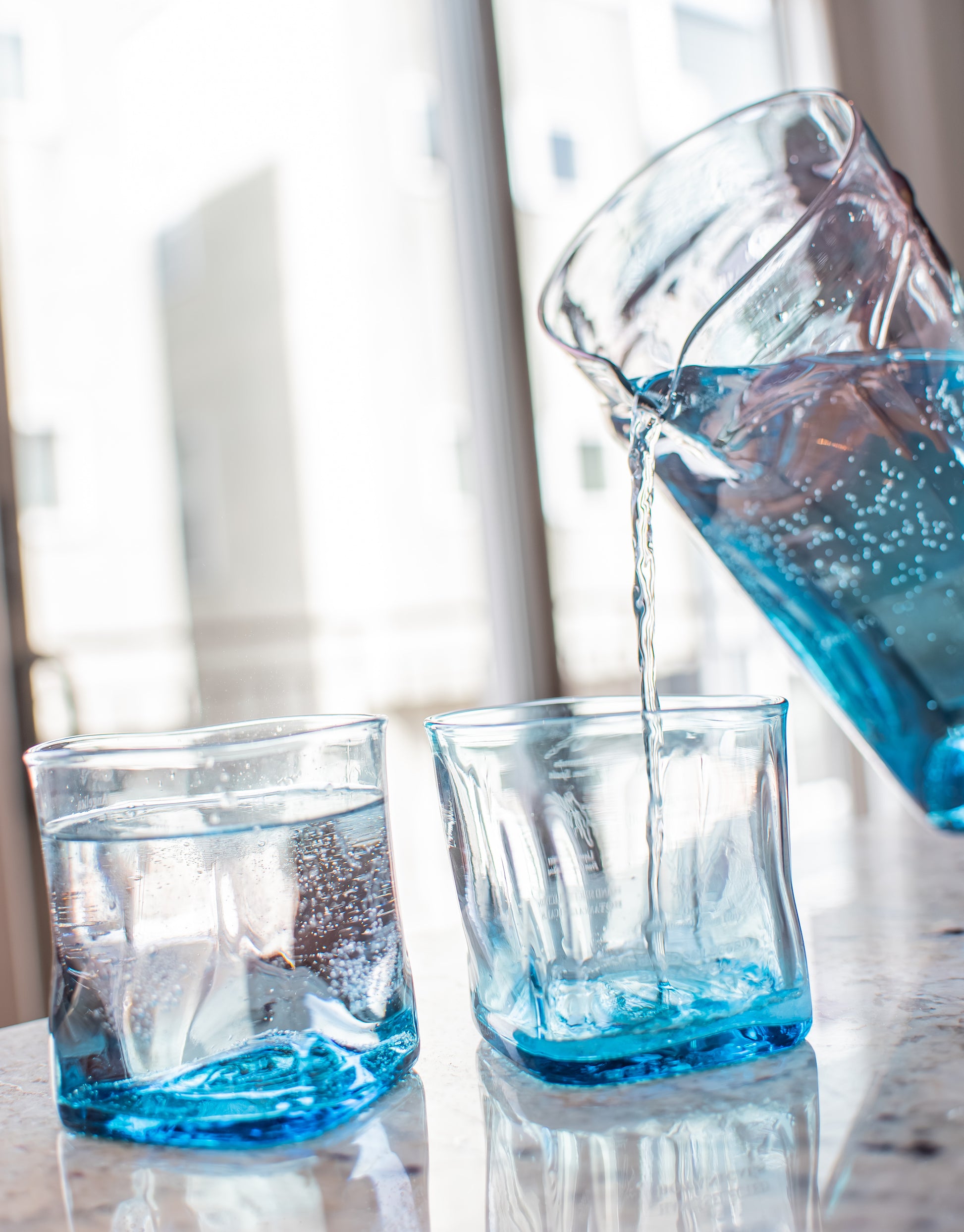 Each pitcher is hand blown in our zero-waste studio from discarded gin bottles sourced from Philadelphia, PA.